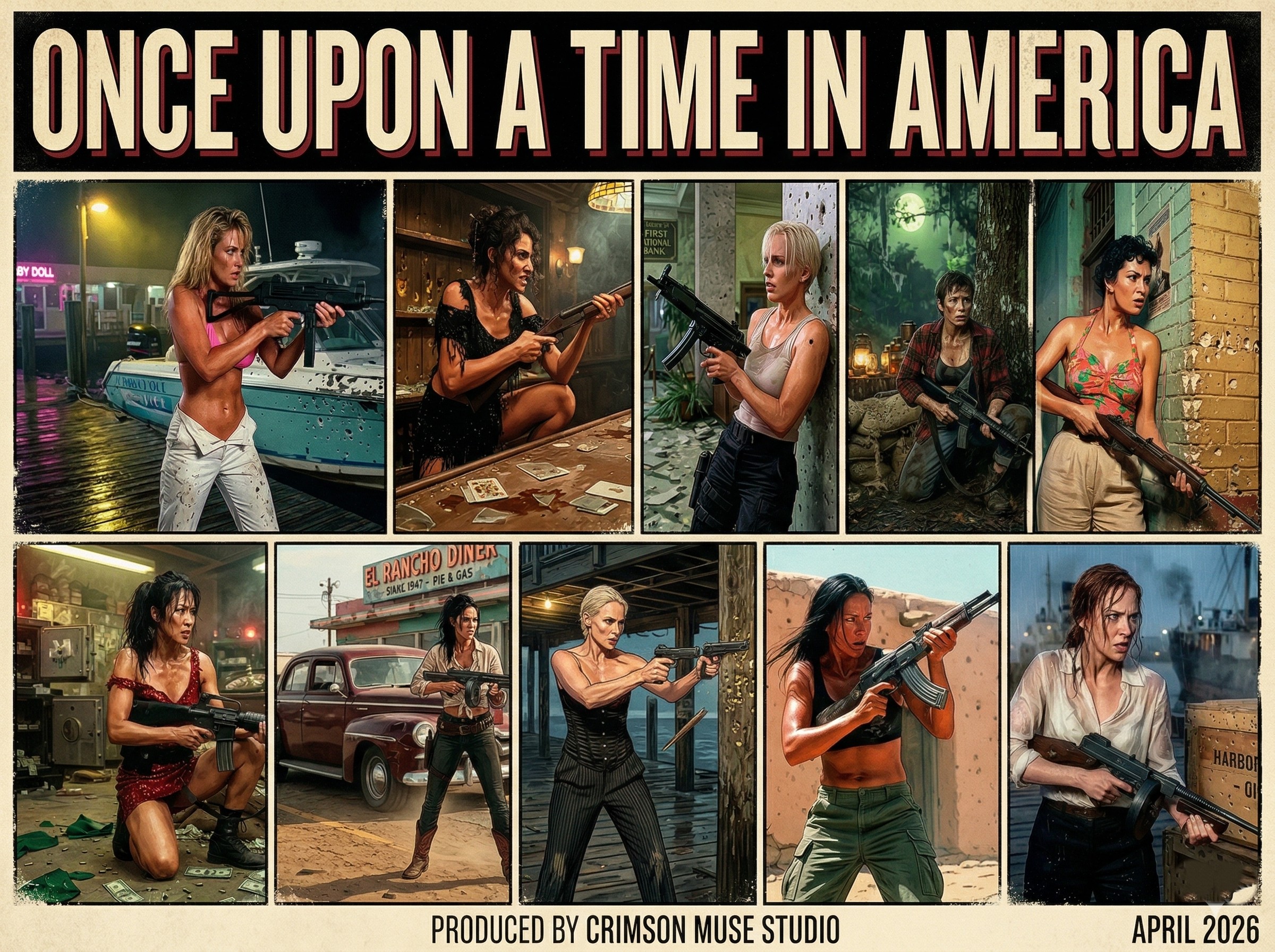 Step into the brutal, bullet-riddled underbelly of the 20th century with “Once Upon a Time in America.” an uncompromising cinematic pack that captures the violent, final stands of ten fierce women across America’s most iconic criminal eras. From a foggy 1920s Prohibition pier and the glass-shattered ruins of a Chicago speakeasy to the grim, sand-swept underbelly of the Atlantic City boardwalk, witness the ultimate sacrifice of the mob’s most ruthless enforcers. Feel the suffocating heat of a 1930s desert highway ambush and a muddy Appalachian bootlegger standoff, before plunging into the high-stakes chaos of a 1950s Havana casino alley and a neon-drenched 1980s Miami dock shootout. Concluding with the explosive grit of a 1970s Vegas vault heist, a dusty 1990s border town cartel clash, and a devastating L.A. bank robbery ruins, this collection delivers hyper-realistic, fast-paced intensity where every shattered environment and unapologetic final trigger pull is rendered in breathtaking, unrelenting detail.